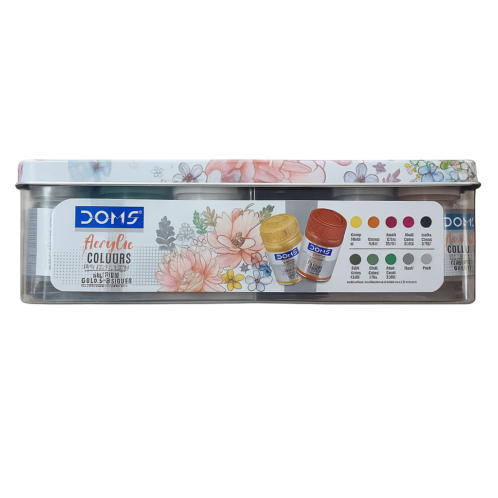DOMS Acrylic Colours are versatile paints ideal for canvas, paper, wood, fabric, and other surfaces. They are commonly used by artists, students, and hobbyists for art and craft projects.